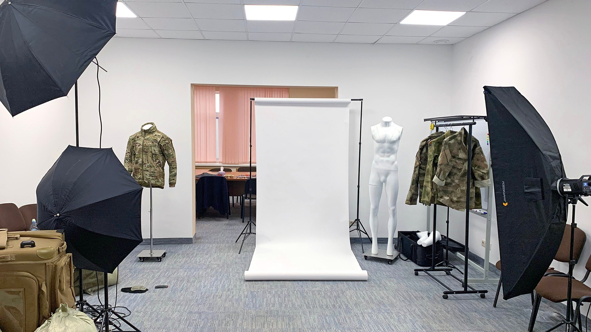 Студия одного моего клиента. Он занимается производством одежды и для удобства он соорудил у себя в офисе циклораму и регулярно проводит там свои съёмки. Ему не нужно никуда ехать и не нужно платить кому-то там за аренду.